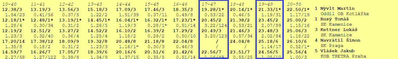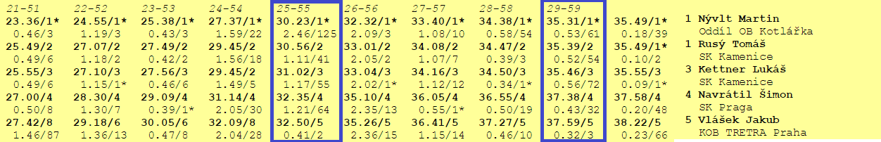 Bum, a chyba jako hrom je na světě. Najednou lítají sem a tam, ani jeden z nich netuší, kde jsou, čirou náhodou se pak omylem nachází zase kousek od 16, kde je po chvilce zkoumání mapy nabírají ostatní závodníci, kteří jim kontrolu nachází. Dvě a půl minuty v tahu. Jejich následující snaha o dohnání chyby vcelku očekávaně končí fiaskem, když nechávají cenné vteřinky na 18, 19 i 20. Na těchto 4 kontrolách ztrácí dohromady asi 4 minuty a vypadá to, že závod pro ně skoční jako vždy propadákem.